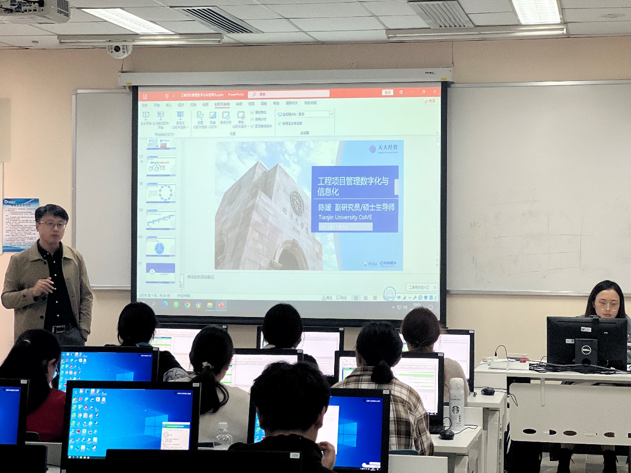 2023年11月1日上午10时,于沙河校区4号楼105实验室,天津大学管理与经济学部副研究员陈媛博士应邀在建设经济与管理系列论坛上做了主题为《工程项目管理数字化与信息化》的讲座。本次讲座由李玉龙老师和吴国滨老师主持,suncitygroup太阳成集团工程与项目管理专业硕士生及工程管理22级本科生参加了讲座。