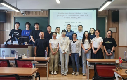 赵以强教授首先指出,先前研究中多数假设到达顾客和出租车之间的匹配时间为零,乘客直接进入系统并乘坐出租车。但在实际情况中,当系统中到达的顾客数量足够多时,乘客与出租车之间存在匹配时间。基于此,本研究关注具有负顾客和非零(两点和分段均匀分布)匹配时间的乘客-出租车双向排队系统,探讨乘客和出租车之间的匹配时间以及系统的出租车容量,得到不同信息水平下的均衡加入策略和社会最优策略。赵以强教授具体介绍了非零匹配时间的乘客-出租车双向排队如何建模,并用数值结果展示了部分关键参数对均衡策略和社会最优策略的影响。最后,赵以强教授提到了未来研究计划,给在座各位师生带来了很多启发。