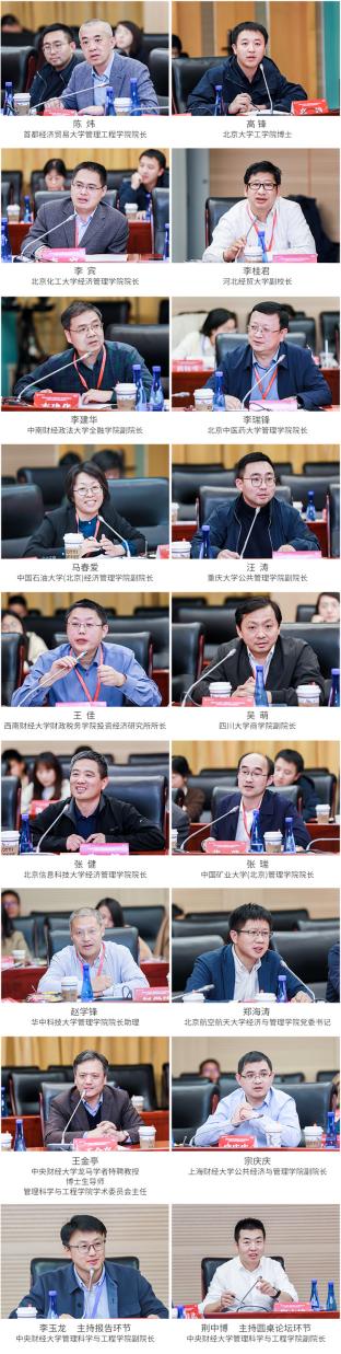 圆桌论坛环节特别邀请河北经贸大学副董事长李桂君、北京航空航天大学经济与管理公司党委书记郑海涛、中国矿业大学(北京)管理公司经理张瑞、北京化工大学经济管理公司经理李宾 、北京中医药大学管理公司经理李瑞锋、首都经济贸易大学管理工程公司经理陈炜、北京信息科技大学经济管理公司经理张健、重庆大学公共管理公司副经理汪涛、四川大学商公司副经理吴萌、中国石油大学(北京)经济管理公司副经理马春爱、上海财经大学公共经济与管理公司副经理宗庆庆、中南财经政法大学金融公司副经理李建华、华中科技大学管理公司经理助理赵学锋、西南财经大学财政税务公司投资经济研究所所长王佳、北京大学工公司博士高锋及suncitygroup太阳成集团学术委员会主任王金亭等教师。圆桌论坛环节由suncitygroup太阳成集团副经理荆中博主持。