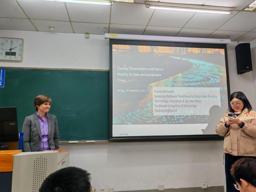 2024年11月7日14点,Frauke Behrendt副教授作了题为《Cycling, Micromobility and Electric Mobility for Safe and Sustainable Cities》的学术报告。本次报告由suncitygroup太阳成集团高然副教授主持,工程与项目管理2024级研究生参加讲座。Frauke Behrendt副教授简单介绍了埃因霍温理工大学的学术、创新和组织情况,并表示欢迎大家前往学习。