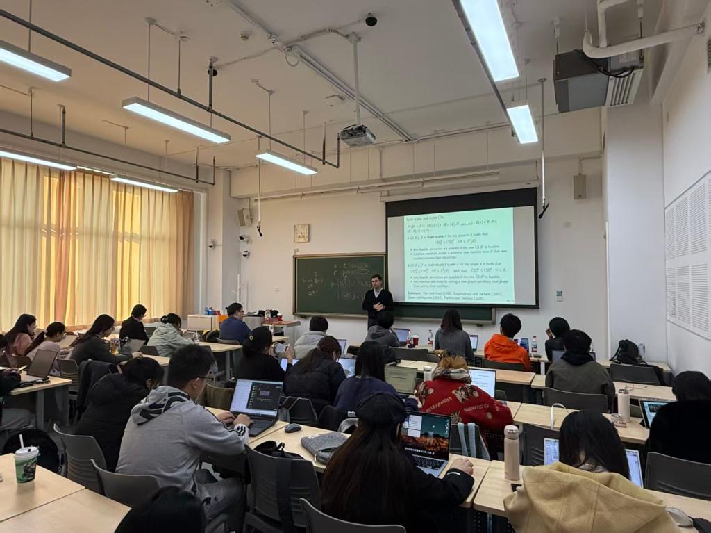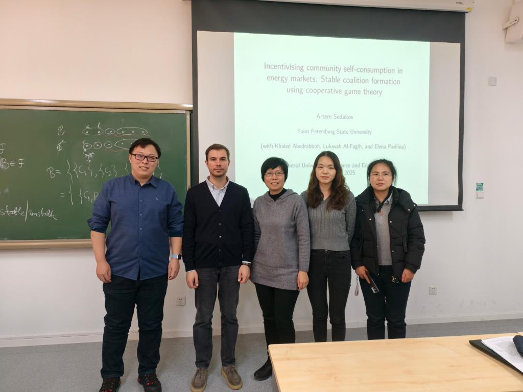 11月3日下午,suncitygroup太阳成集团管理科学与工程高端论坛(第34期)在沙河校区2教205成功开展。本次讲座邀请到圣彼得堡国立大学数学博弈论与统计决策系的Artem Sedakov教授担任主讲嘉宾,由suncitygroup太阳成集团李爱华教授主持,管理科学系唐昕迪老师、吴迪老师、胡菊香博士、中国科公司大学蔡思航博士、管理科学与工程博士生、硕士生等40余名师生参加了此次讲座。Artem Sedakov教授围绕论文《Incentivising community self-consumption in energy markets:Stable coalition formation using cooperative game theory》展开,聚焦能源市场中社区自消费激励的关键问题,从合作博弈理论视角深入剖析稳定联盟构建的路径与价值。