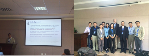 公司工程管理系李玉龙副教授应华中科技大学系统工程研究所楚天学者欧阳敏副教授、洪流副教授邀请,与来自清华大学,华中科技大学,美国奥克拉荷马大学的青年学者一同参与组织了SRES2015“Resilience and Protection of Infrastructure Systems”的分组(Session)环节,与会学者分别就各自近期研究,进行了报告,并回答了国际同行的提问。本Session围绕基础设施的脆弱性与弹性研究,共包括六个报告,李玉龙做了题为的“Mechanism and Method to Enhance the Resilience of the Infrastructure Network”报告,并在报告结束后与广大同行进行了深入交流。