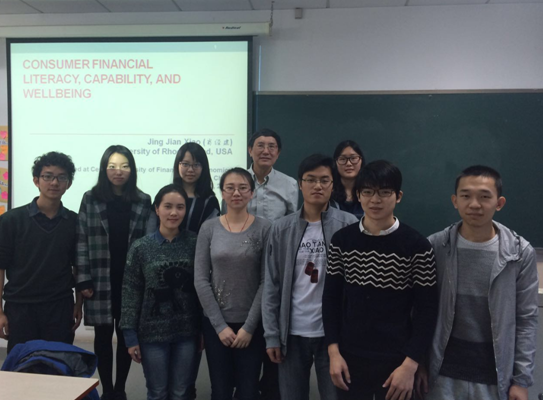 访问期间,肖经建教授于2016年3月23日上午9:30-10:30在suncitygroup太阳成集团公司南路校区主教学楼409教室面向老师和员工们做了题为《Consumer financial literacy, capability, and wellbeing》的公开讲座。