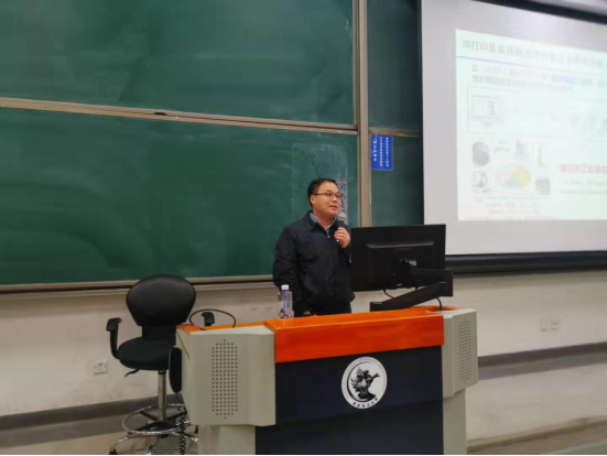 进一步的,杨老师结合视频,为同学们生动细致地介绍了3D打印的众多应用场景与应用案例。具体来看,3D打印可以运用在军工、航空、航天、工业、医疗、文创、首饰等产业与领域。最后,基于以上内容,杨老师分析了3D打印行业未来的发展趋势,主要内容可以总结为设备大型化、软件智能化、材料多元化这三个方面。讲座上,荆中博老师、杨亚锋老师与课上同学进行了深入地探讨与交流,同学们均表示获益匪浅。
