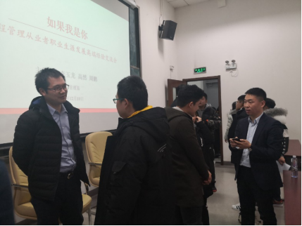 2019年12月10日晚上7:20-9:30,住建部计财与外事司经济信息处副处长倪稞先生,中国电建国际公司战略与经营管理部总经理任超锋先生,中国建筑股份有限公司金融部资深高级经理曲鸣先生受公司工程管理系教师邀请,在沙河主教212与管理科学与工程2019级全体同学开展精彩对话,活动由李玉龙老师主持。