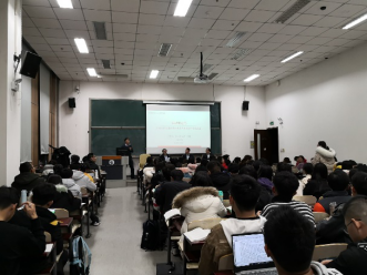 曲鸣先生先通过一段宣传片介绍了中国建筑的情况,展示了绿色建筑和人工智能等前沿科技在建筑业中的应用,然后从个人成长、工作选择和未来规划三方面与同学们做了真诚的分享。