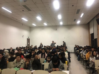 任超锋先生介绍了中国电建及其取得的成绩,强调作为财经类工程管理人才要从战略上紧跟国家政策发展经济,落实“一带一路”倡议,并对在座同学提出几点建议,要求大家认真学习外语,自学法律、金融等知识,成为未来社会需要的综合性人才。