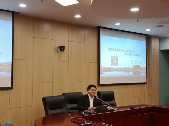 北京市密云区北庄镇镇长林立进行了题为“首都民生基础设施工程投资决策影响因素与治理对策”的演讲。林镇长在简要介绍北庄镇的概况后,从政府支持农村基础设施项目建设、北京市农村基础设施项目情况、基础设施项目投资管理存在的问题以四个方面进行了演讲。最后,林镇长从编制规划、决策程序、部门协同、产权归属等多个方面提出了农村基础设施建设管理的对策建议。
