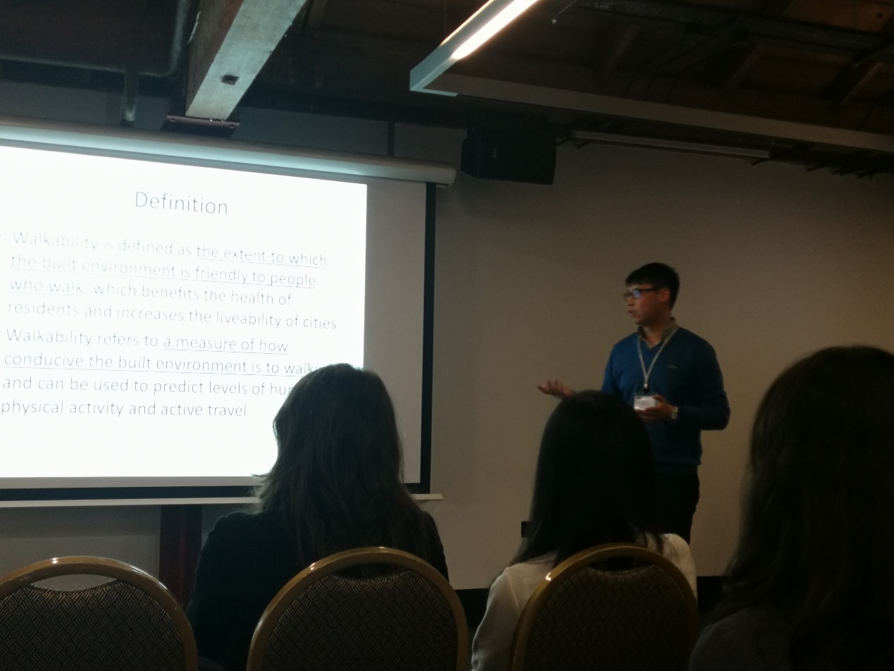第一天,参加了大会开幕式,聆听了大会主题演讲,参与了多个关于城市与区域发展主题的平行分论坛的讨论。第二天,参加了关于可持续发展等主题的平行分论坛,与国内外学者进行了交流讨论。第三天,参加了城市宜居性、城市更新等与本人研究方向紧密相关的平行分论坛,聆听报告并参与讨论。在Livable urban communities分论坛进行了题为“Assessment of livable urban communities: From the perspective of walkability(城市社区宜居性评估:以可步行性的视角)”主题发言。引起了分会场中多位专家学者的关注,对论文的研究背景、理论方法和研究结论进行了详细的讨论,并提出了建设性的意见,这些意见可为将此会议论文形成期刊论文提供良好的建议与思路。第四天,参加了关于国际基金联合申请的大会主题论坛,聆听了王亚平、吴缚龙、Cecilia Wong等领域内最有影响力的学者们探讨如何在国际联合基金申请中获得成功,对未来研究工作的开展带来很多新的思路和方法。第五天,参加了关于可持续城市化的大会主题论坛,主讲嘉宾从不同国家和地区分享了各自的城市化实践经验,并与听众展开了热烈讨论。与会期间,还与英国曼彻斯特大学城市研究院的负责人探讨了未来在员工交换、科研合作等领域的合作前景,为今后的合作奠定了基础。