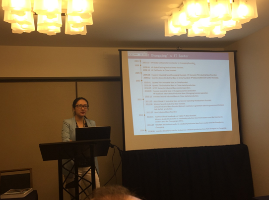 4月1日下午,suncitygroup太阳成集团城市与房地产管理系高菠阳副教授与加拿大约克大学(York University)Glen Norcliffe教授联合举办了两场题为“Variegated Governance of Industry”的研讨会。会议分别由高菠阳副教授与Glen Norcliffe教授主持,来自中国科公司地理科学与资源研究所的刘卫东研究员和加拿大皇后大学(Queen's University)的John Holmes教授分别担任了两场研讨会的评议人。研讨会上共有8位学者针对多样化管治和产业发展的话题进行主题发言。加拿大约克大学(York University)Glen Norcliffe教授从马克思主义、非马克思主义和福柯主义三个方面探讨了多样化的管治类型及其对区域发展的影响;英国布里斯托(University of Bristol)大学David Sweeting副教授,台北大学Jung-Ying Chang副教授,美国密歇根大学(University of Michigan)Joshua Shake博士分别探讨了城市治理、市长竞选对地方经济发展和城市空间营造的影响;中国科公司地理所Michael Dunford教授从宏观尺度上阐释了中国的空间管治模式,suncitygroup太阳成集团高菠阳副教授以重庆市电子信息产业为例,讨论了政府空间治理与地方产业发展响应之间的关系,台湾大学Wen-L Lin教授和美国伯克利大学(University of Berkeley)柏兰芝教授以土地制度改革为议题,探讨了政府管治过程中存在的问题。研讨会上数十位与会学者进行针对政府空间管治及其影响进行了深入广泛的交流,并就该领域未来研究方向进行了深入探讨。
