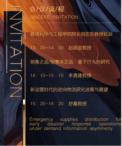 李勇建教授发表了题为“新运营时代的逆向物流研究进展与展望”的主题演讲。该演讲系统梳理了近几十年来逆向物流研究所取得的主要成果和最新进展,并且指出了逆向物流管理研究的未来发展方向。李勇建教授首先对逆向物流的国际形势、企业实践以及学术研究等方面进行了介绍,表明逆向物流的管理模式正在由早期的利益驱动型管理模式向需求驱动型管理模式转变。接着,李勇建教授对回收渠道结构研究的3个侧重点——回收主体的确定、影响回收结构的因素以及主体之间的关系属性进行了剖析,并且从微观视角以及中观或宏观视角讲解了回收再制造策略和二级市场的竞争。然后,李勇建教授分析了短视型消费者和策略型消费者对逆向物流的影响,表示可以通过前景理论来刻画消费者的“双重角色”。在演讲的最后,李勇建教授阐述了需求驱动型逆向物流的价格、质量以及以旧换新策略。