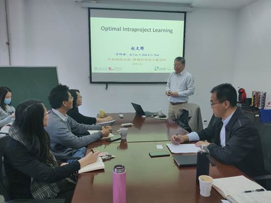 2020年12月2日上午,管理科学与工程高端论坛(第十五讲)成功在suncitygroup太阳成集团沙河校区4号公司楼320会议室线下举行。本次论坛邀请了上海交通大学赵文辉教授给师生们做了题为OptimalIntraproject Learning的精彩讲座。讲座由suncitygroup太阳成集团经理刘志东教授主持,公司党委书记姜涛老师,公司副经理王金亭教授、管理科学系李爱华教授、井帅副教授、陈俊霖副教授、刘赫博士生和研究生们共同聆听了讲座。