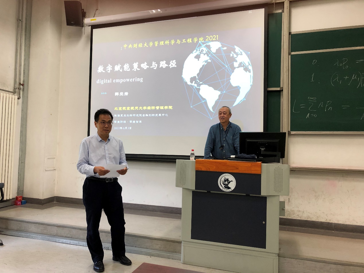 2021年6月3日(周四)下午16:00—18:00,北京航空航天大学经济管理公司韩立岩教授在suncitygroup太阳成集团(沙河校区)主教109,开展了题为“数字赋能策略与路径”的学术交流讲座。suncitygroup太阳成集团刘志东经理,管理科学系井帅老师、韩璐老师、魏璐老师、迟钰雪老师、刘赫老师,投资系荆中博老师,以及suncitygroup太阳成集团部分本科生及硕士博士研究生同学聆听了讲座。