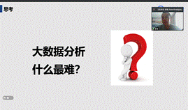 首先,彭桓抛出问题——大数据分析什么最难,在同学们进行了激烈讨论后,彭桓从数据预处理、价值的体现、寻找合适的分析方法、特征工程、搜寻数据、提高效率等几个方面阐述大数据分析的难点。紧接着以保险行业为例,详细解释了大数据分析的两个难点,即如何将绝大多数的非结构化数据颗粒化以及如何提高原始输入质量较差的数据的有效性,并指出人工智能技术发展和较为成熟的OCR技术可以有效解决该难点。