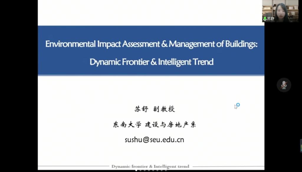 2022年6月6日上午,东南大学建设与房地产系苏舒副教授应邀在第79期建设经济与管理系列论坛上做了主题为“环境影响评价和管理:动态和智能化前沿趋势”的线上报告。讲座由公司建设经济与管理系主任杨帆副教授主持,高然副教授和建设经济与管理系20级本科生及21级研究生参加了讲座。