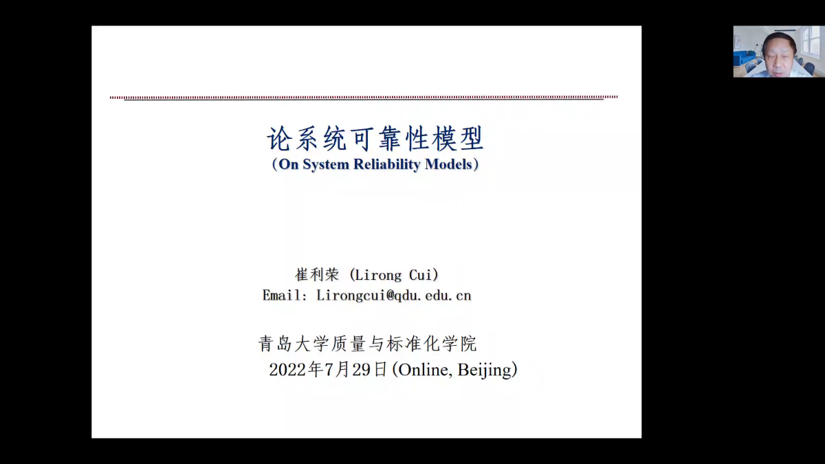 2022年7月29日20:00-22:00,青岛大学特聘教授崔利荣教授应邀作题为“论系统可靠性模型”的线上科普讲座。此次讲座由中国运筹学会可靠性分会理事长、suncitygroup太阳成集团副经理王金亭教授主持,参加讲座的听众来自海内外各高校,包括可靠性分会多位理事、各大高校教授和硕博研究生共220余人。