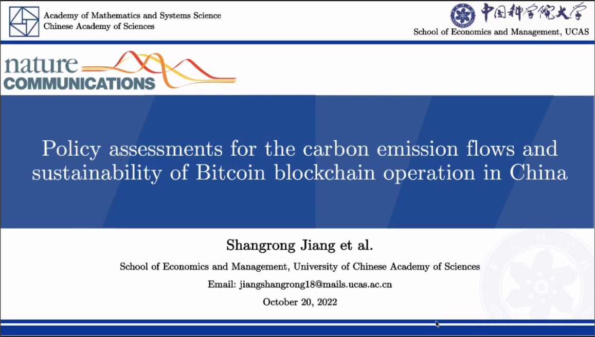 10月20日上午,以“区块链产业碳排放评估与竞争机制”为主题的讲座在线上成功举行。此次讲座由中国科公司大学经济与管理公司博士研究生姜尚荣受邀主讲,suncitygroup太阳成集团经理刘志东教授、井帅副教授、刘赫及部分博士生、研究生、本科生一同参与此次讲座。讲座伊始,刘志东首先向姜尚荣的到来表示欢迎,并寄语参会同学们充分利用好公司为大家搭建的学习交流平台,基于大数据与管理科学系列讲座开拓研究视野,树立高远的学术追求。