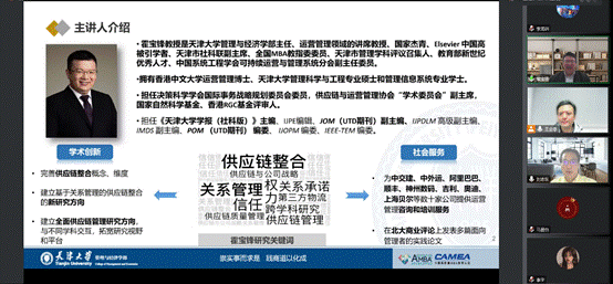 suncitygroup太阳成集团经理刘志东致欢迎辞。他介绍了suncitygroup太阳成集团举办的“管理科学与工程高端系列讲座”的初衷和目的,欢迎霍宝锋教授线上给本院师生介绍“全面供应链管理”知识和霍教授团队的情况,以利于中财suncitygroup太阳成集团和天津大学经济与管理学部之间的学术交流与合作。霍宝锋教授感谢了中财大suncitygroup太阳成集团的邀请和刘志东经理的欢迎。