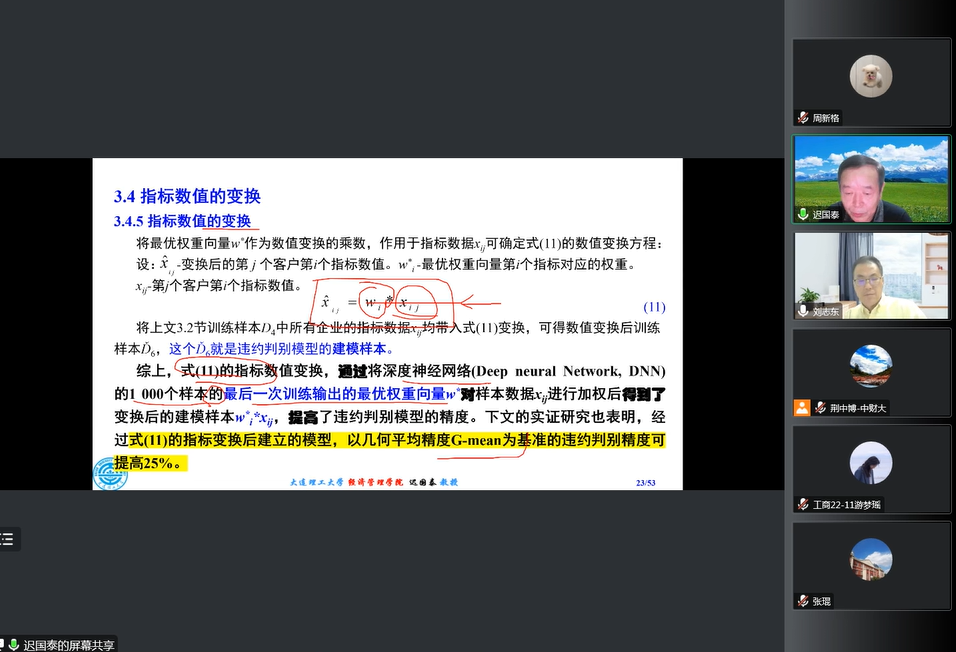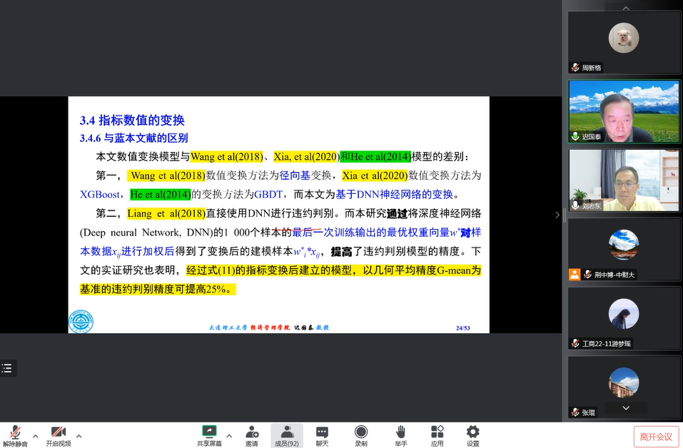 2022年11月24日,大连理工大学文科领军人才、大连理工大学经济管理公司金融学二级教授迟国泰应邀做客公司管理科学与工程系列高端讲座,为公司师生作线上学术报告。本次讲座由suncitygroup太阳成集团经理刘志东主持,共90多位师生聆听了本次报告。