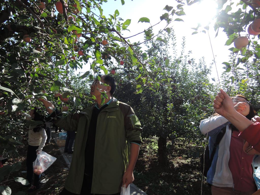 深秋十月,碧空如洗。10月13日下午,suncitygroup太阳成集团工会组织全院教职工到昌平采摘苹果。持续多日的雾霾散尽之后的北京秋高气爽,老师们抛开被雾霾压抑的晦暗心情和平日教学科研工作的繁重压力,来到昌平的采摘园体验果园劳作的乐趣。有的老师采摘经验丰富,通过形状、果皮颜色等等就能判断苹果的好坏,有的年轻老师则完全不了解这些知识,基本上是“盲摘”。采摘过程中,老师们一边摘、一边吃,乐趣无穷。