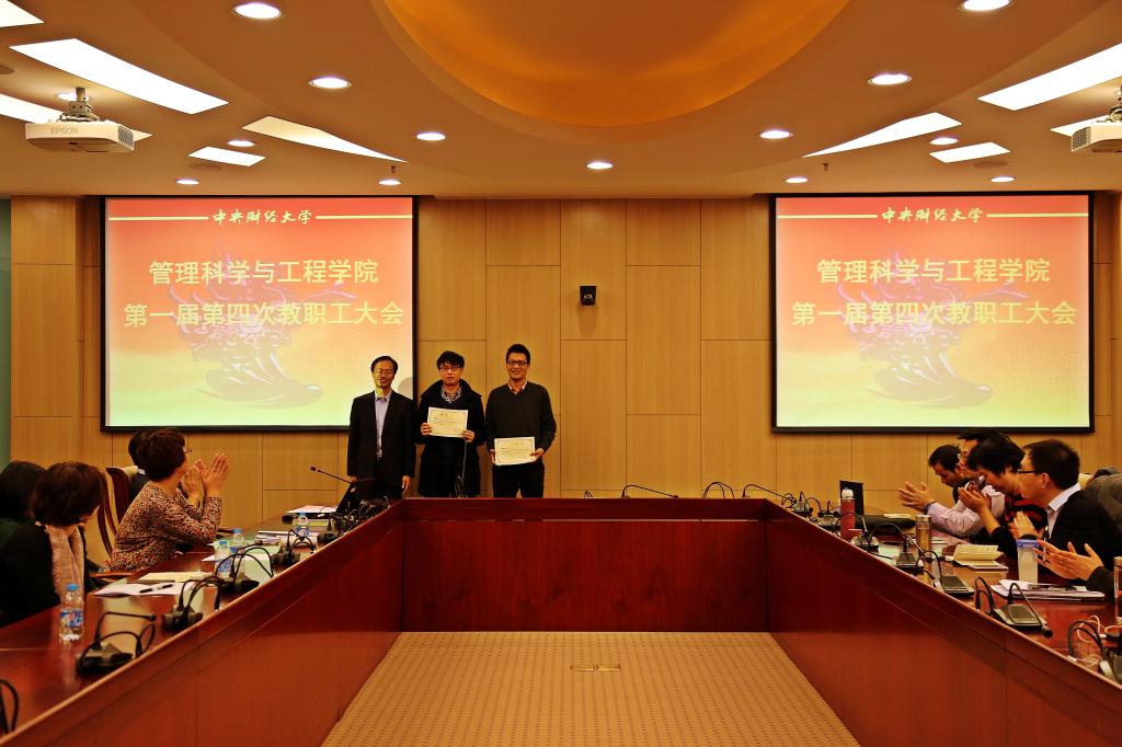 随后,各项获奖者代表就自己的工作经验和工作体会与全体教师进行分享交流。“优秀教学奖”获得者黄志烨结合自己的教学体会,从教学特色、授课方式、课程设计等方面介绍了自己的教学经验。“优秀科研奖”获得者王昊认为高质量的科研成果源自内心的动力、脚踏实地的调研、加强对外合作。“班主任工作成绩突出奖”获得者宋斌从把握新时期员工的特征、班级文化建设、大学各阶段的定位及相应的模块化管理等方面阐述班主任工作的心得体会。