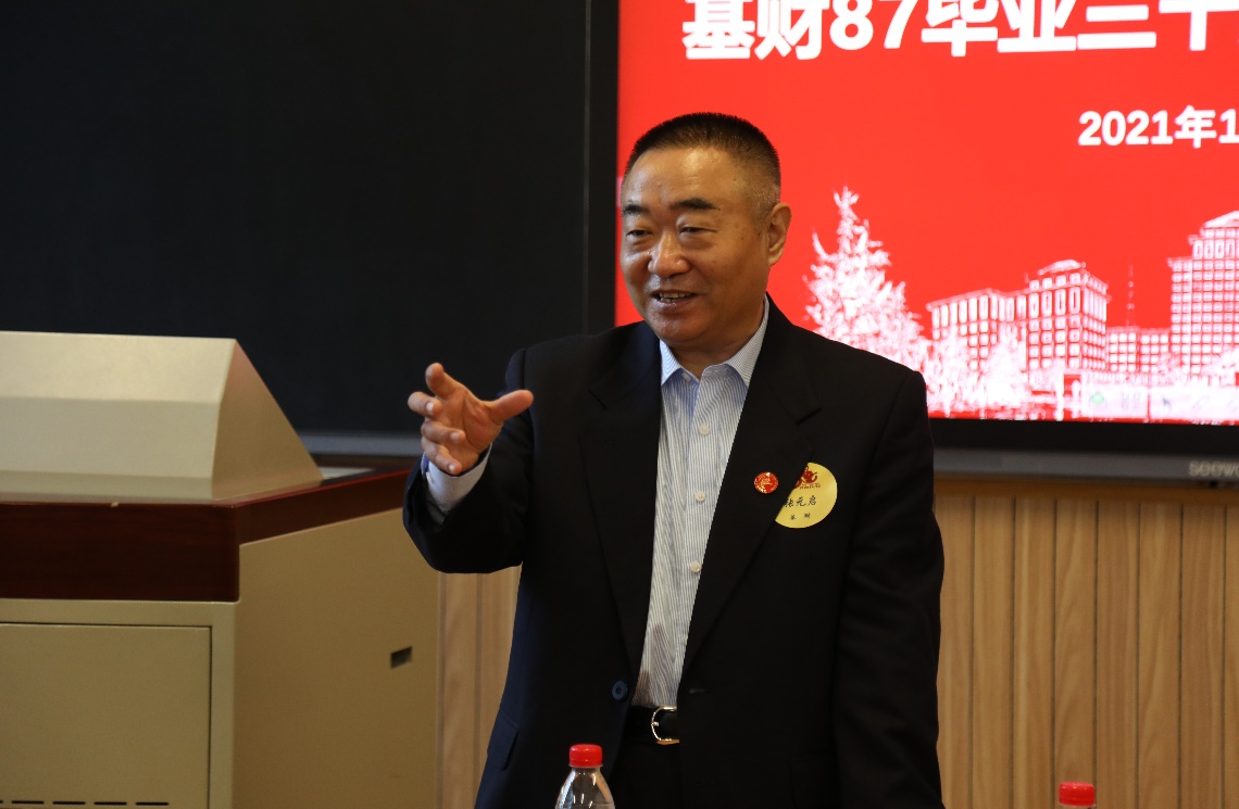 接下来教师代表栾华教授发言。他回顾了当年与87级员工们课上课下的轶闻趣事,感慨时间飞逝,当年的一个个青葱少年已鬓生华发。