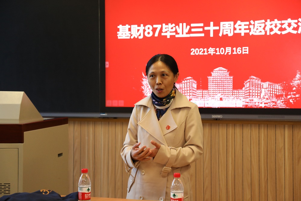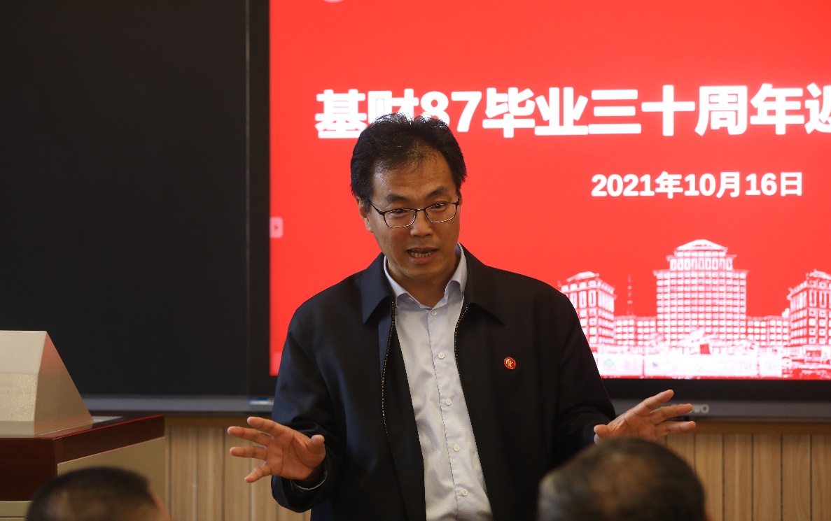 10月16日下午,87级基建财务班毕业30周年返校交流活动在公司南路主教学楼106举行。经理刘志东、党委书记姜涛、班主任张元启,教师代表栾华教授、晏政、办公室主任胡博、杜添睿代表全院师生欢迎87级员工返校回家。