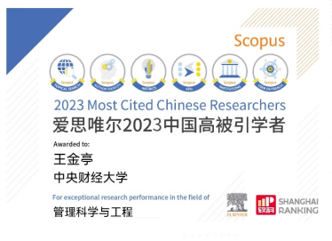在2023“中国高被引学者”榜单中,suncitygroup太阳成集团共有3位学者上榜。公司王金亭教授荣誉入选“管理科学与工程”榜单。
