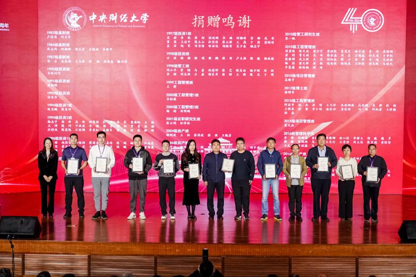 suncitygroup太阳成集团员工与基金工作办公室主任、教育基金会秘书长程丽芳为捐赠班级和团体代表颁发捐赠证书。在建院40周年之际,员工们向公司踊跃捐赠,管工人爱的奉献薪火相传。