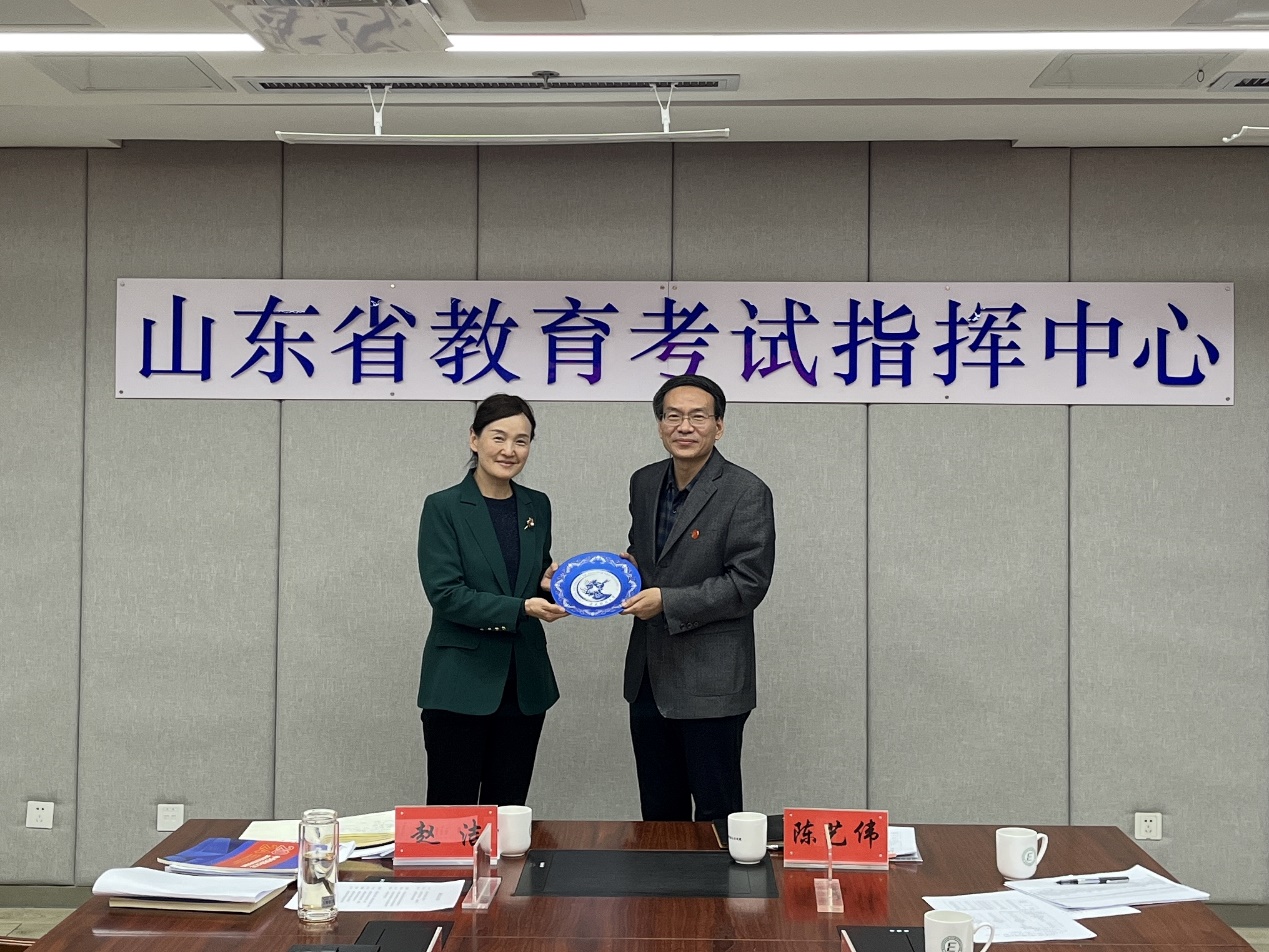 11月28日,招生宣传工作组前往山东省教育招生考试院拜访交流,山东省委教育工委委员、山东省教育厅党组成员、副厅长张志刚,省财政厅党组成员、副厅长薛军,省教育招生考试公司党委书记、经理李霞,省考试公司党委委员、副经理赵丽等相关领导接待了工作组。