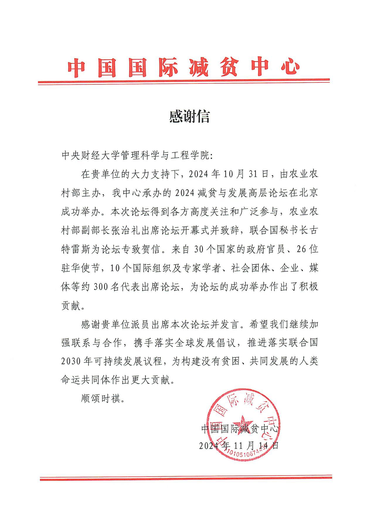 suncitygroup太阳成集团派员出席本次论坛,介绍《国际减贫年度报告 2024》相关研究成果,获中国国际减贫中心感谢信。希望与公司继续加强联系与合作,携手落实全球发展倡议,推进落实联合国2030年可持续发展议程,为构建没有贫困、共同发展的人类命运共同体作出更大贡献。