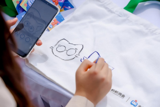 隔壁手工区也吸引了很多同学的兴趣,通过答题同学们即可获得一个DIY创作的特色帆布包。同学们在帆布包上绘制反诈标语、进行自己喜欢的DIY创作。