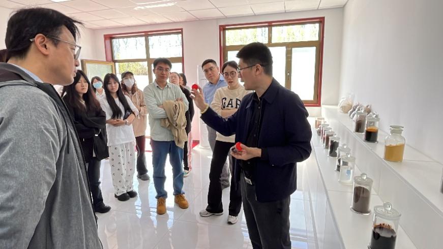 随后,文教授带领师生参观了公司实验基地,并介绍其参与公路工程技术和材料研发的历程。从沥青技术相关工艺到 “中国沥青路面五朵金花” 的传奇故事,那些在技术攻坚中绽放的女性力量,成为行业精神的生动注脚。他借此教导同学们,在科研的道路上,不分性别,不分先后,坚信“精诚所至,金石为开”,对事业的责任与热爱,是推动行业进步的核心动力。