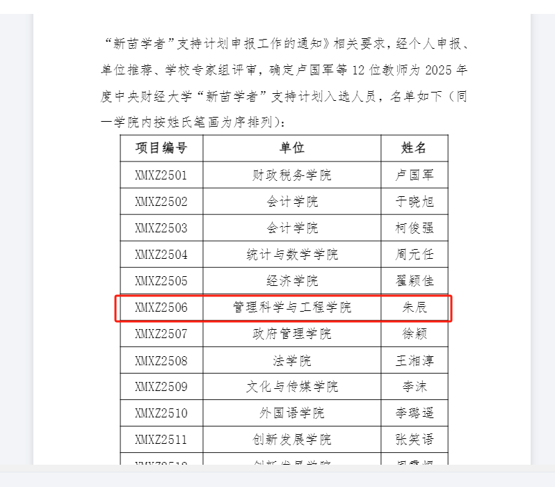 近年来,公司深入实施“人才兴院”战略,持续完善青年教师支持机制,此次朱辰老师的成功入选,充分体现了公司青年教师的学术实力和发展潜力。未来,公司将继续为青年教师营造良好的发展环境,推动人才队伍建设和学科高质量发展。