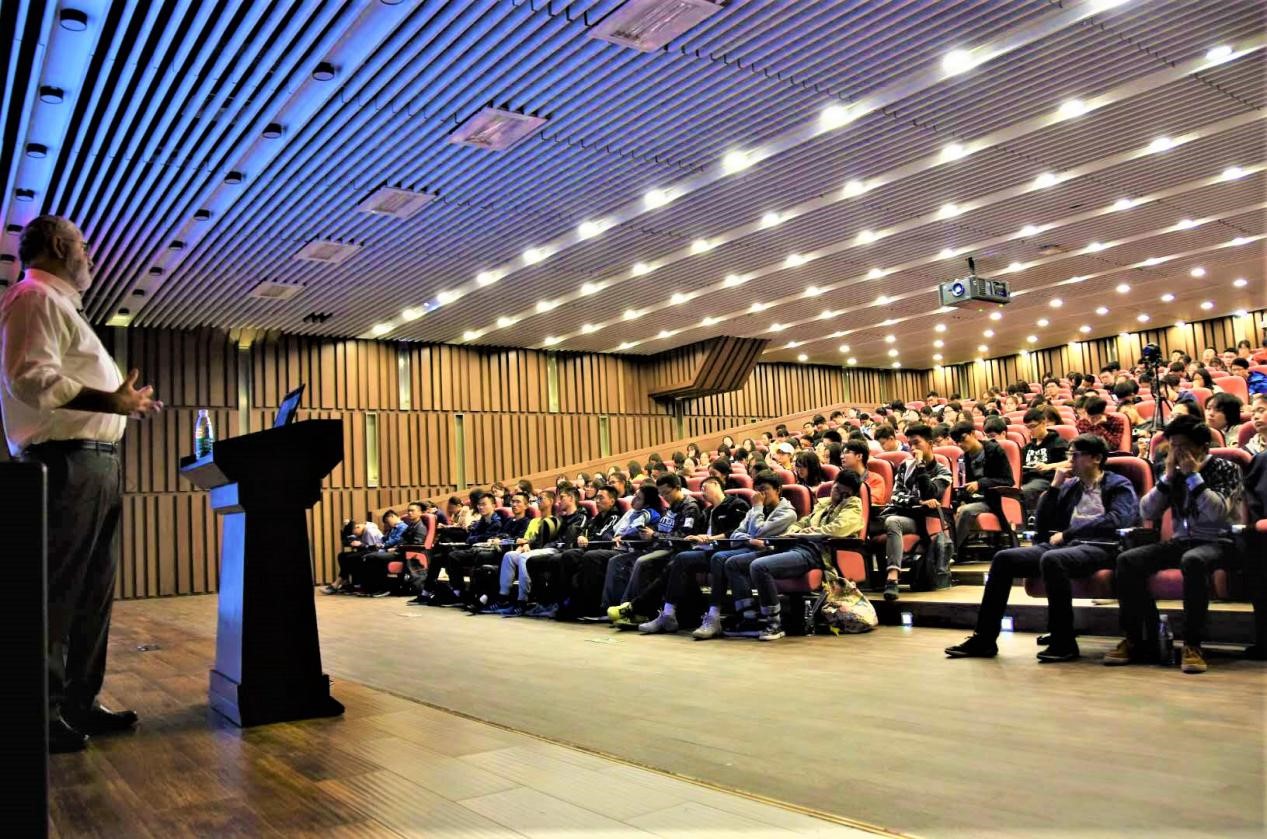 教授授课结束后,在场同学踊跃提问,并就当下“房住不炒”、欠发达地区发展思路、科技创新与城市化等社会热点问题与教授展开讨论。教授对同学们所提问题都进行了详细的解答,现场气氛活跃,同学们受益匪浅。