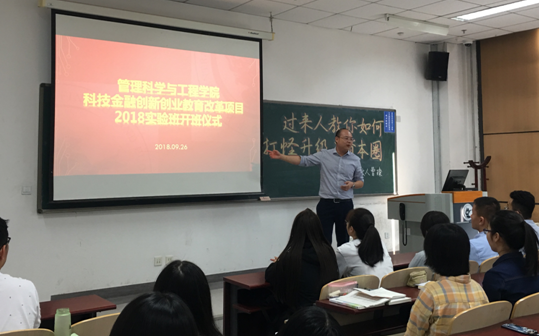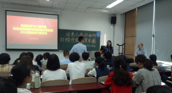 2018年9月26日下午14:30,suncitygroup太阳成集团与深圳弈投孵化器合作的科技金融创新创业教育改革项目2018级实验班开班仪式于沙河校区主教307教室举行,开班仪式由经理助理高菠阳副教授主持。