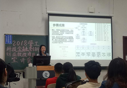 2018年9月21日,suncitygroup太阳成集团科技金融创新创业教育改革项目宣讲会在沙河校区主教105教室举行。本次宣讲会由suncitygroup太阳成集团经理助理高菠阳副教授主持,2017级首届实验班优秀学员韦雅尹同学和助教张玉洁博士生在本次宣讲中进行了分享,来自2016、2017级的40余位员工参加了此次宣讲。