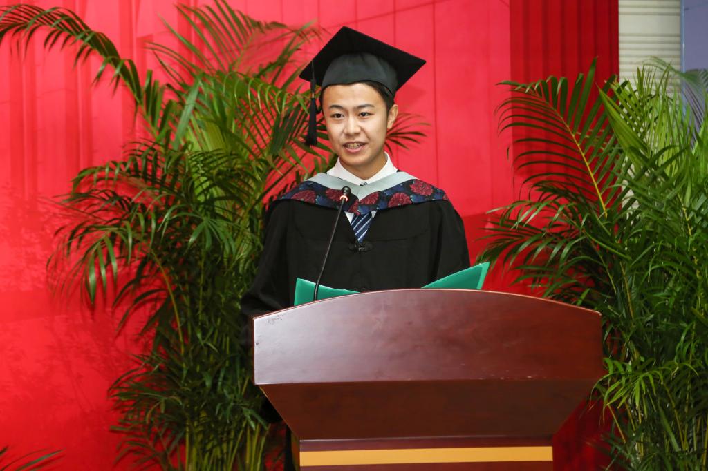 在师生代表发言环节,首先由2014级房地产开发与管理专业汪昊同学作为本科毕业生代表发言。他深情回忆了同学们与suncitygroup太阳成集团共同成长的点点滴滴,图书馆中的灯光,中财杯赛场的汗水,赋予了每一位管工人脚踏实地、勇于担当的管工精神。未来,他们将带着中财管工的烙印为祖国建设添砖加瓦,向民族复兴奋斗终生!李俊玮同学代表研究生毕业生在临别之际,送来三谢。一谢母校和公司,传与“龙马担乾坤”的精神,赋予“管工人”的骄傲。二谢父母和恩师,育人、授业、解惑,指引同学们在人生的道路上不断前行。三谢每一位同学,两载春秋相伴走过,感谢彼此的支持与相互的鼓励。