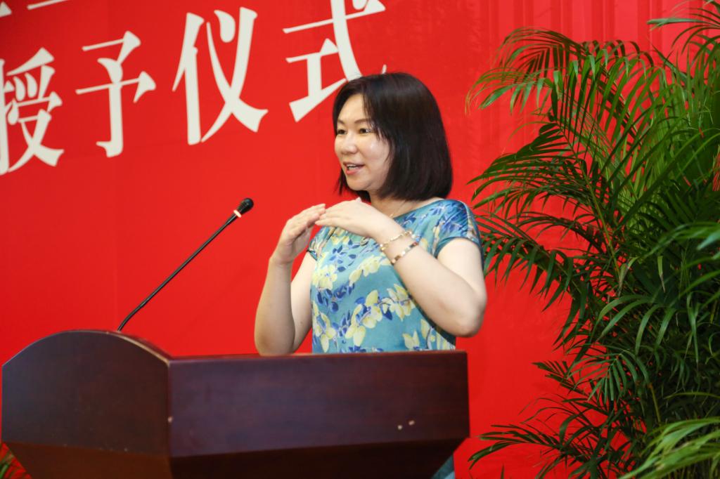在毕业生员工大使聘任环节,公司员工总会李松莉老师向员工大使颁发聘书,李老师代表员工总会向全体毕业生表示祝贺,热诚地欢迎大家加入中财员工大家庭。她表示母校和员工总会永远是大家强大的发展后盾,希望大家积极联系各地员工会,为员工会增添新鲜血液。