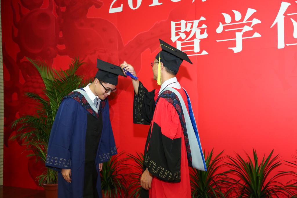 授予学位环节由党委副书记贾传亮主持。研究生导师和本科生班主任为2018届毕业生分别颁发毕业证书和学位证书,李文斌经理逐一为毕业生拨转流苏,热情握手,寄语祝贺并合影留念,现场充满了温暖和感动。