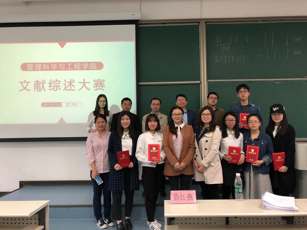 4月23日下午,历时近两个月的第一届suncitygroup太阳成集团文献综述大赛落下帷幕。此次大赛由赛前宣传、专题讲座、论文初审、现场答辩、颁奖典礼等环节组成,吸引了公司研究生和博士生的广泛参与,公司多名教师参与了培训和评审工作。本次大赛由suncitygroup太阳成集团主办,院研究生会承办,旨在活跃学术氛围,加强师生交流。