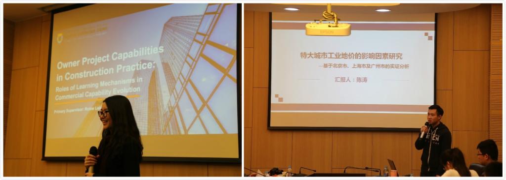 经过轻松愉悦的茶歇时间之后,接下来的两地研究生交流论坛由经理助理王昊副教授主持。第一位是由来自香港大学的张苏娟同学发表了主题为“Introduction of HKU CIBSC”的学术报告。首先她介绍了香港大学的基本情况,包括香港大学的地理位置及公司设置,以及建筑公司基本概况。其次她详细介绍了香港大学CIBSC,包括其运营模式,基本内容以及主要人员。第二位同学则是来自suncitygroup太阳成集团房地产开发与管理专业16级研究生陈涛,汇报主题为“特大城市工业地价的影响因素研究——基于北京市、上海市及广州市的实证分析”。首先他介绍了我国工业用地的基本情况以及国内外研究内容,提出本研究的重要性和前瞻性。并基于全球化、市场化和分权化三个理论框架,全球层面、国家层面、地方层面、企业层面四个层面搭建了三化四层面理论模型。并通过GIS空间化北京市、上海市以及广州市工业地价分布情况的实际情况以及计量模型的理论分析,得到了我国一线城市各自工业地价的重要影响因素来源。
