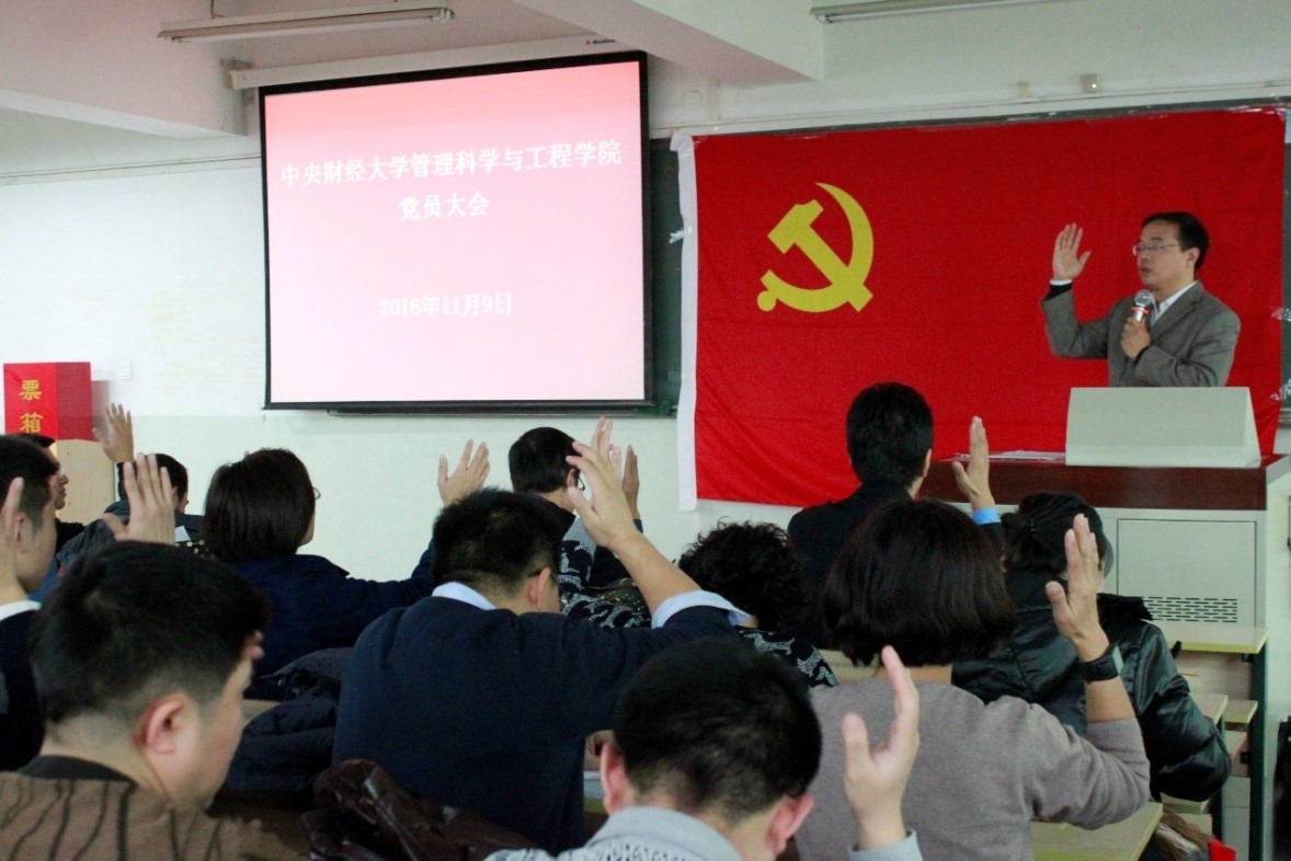 根据公司党委统一部署,按照《关于开展基层党组织换届选举和二级纪委选举工作的通知》(公司党字[2016]24号)的文件精神,管理科学与工程公司党委于2016年11月9日下午在公司南路主教403召开基层党组织换届选举和二级纪委选举党员大会,公司全体师生党员参加大会,本次大会由公司党委副书记贾传亮同志主持。