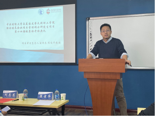 接下来,公司领导、suncitygroup太阳成集团经理刘志东教授致辞。刘志东经理结合自己在公司十几年的工作经历,与同学们分享了他对史蒂文斯项目的感受和认识。他认为史蒂文斯项目之所以能够享有很高的社会声誉,不仅仅是因为其强大的中外团队力量、严谨的教学态度、优秀的管理团队,更重要的是这个项目已逐渐成为中财和史蒂文斯理工公司学术交流和两员工谊的窗口,项目的目标在于传授知识、教书育人、为社会培养管理人才。最后,刘志东经理祝各位同学们在中财能够学业有成,学有所获。