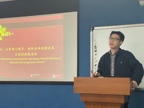 主管部门领导、suncitygroup太阳成集团国际合作处副处长王昊副教授也在开班典礼中致辞。他首先祝贺大家入选项目,并指出项目的课程均按照美方标准设置,希望同学们做好吃苦的准备,平衡好学习和工作,同时也希望大家能够养成良好的学习习惯。最后,王昊副处长表示,希望大家通过项目的学习能够培养国际视野,并预祝同学们学业有成。