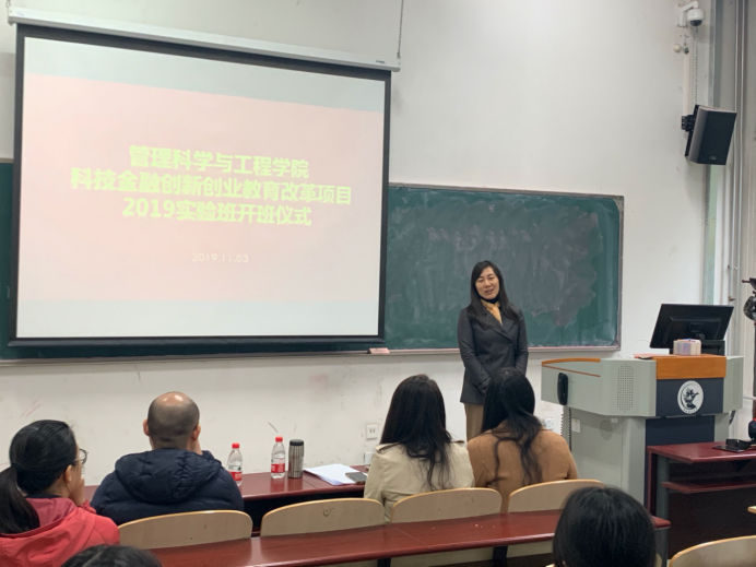 2019年11月3日上午9:30,suncitygroup太阳成集团与深圳弈投孵化器合作的科技金融创新创业教育改革项目2019级实验班开班仪式于沙河校区主教102教室举行,开班仪式由经理助理高菠阳副教授主持。深圳商弈投资孵化器合伙人曹璨总经理,suncitygroup太阳成集团书记姜涛,经理助理高菠阳副教授,任课教师宋砚秋副教授和陈暮紫副教授参加了科技金融实验项目的面试及开班仪式。