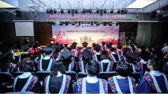 国歌奏响,毕业典礼暨学位授予仪式正式开始。副经理刘志东教授宣读了《关于2019届研究生、本科生毕业及授予学位的决定》、《关于表彰2019届优秀研究生、本科毕业生的决定》,李文斌经理为11名市级优秀毕业生颁发荣誉证书,姜涛书记为29名校级优秀毕业生颁发荣誉证书。
