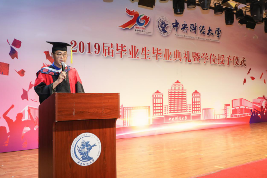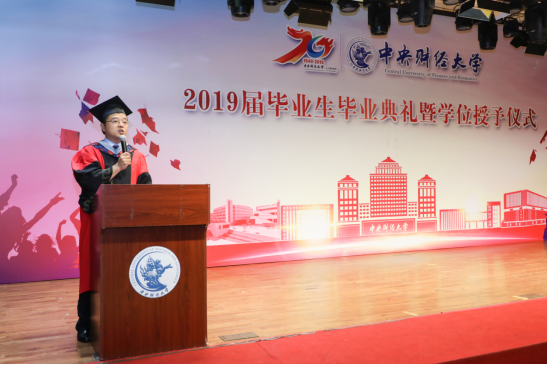 北京云弘投资有限公司创始合伙人云波先生受邀参加典礼。他是公司98级投资经济专业员工,长期以来热衷开展员工工作,回馈母校,现为公司员工理事会秘书长。他在致辞中深情回忆难忘的中财岁月,结合自己求学和事业发展的经历,与毕业生分享了三点体会。一是要做好选择并坚定地走下去,秉持拼搏和奋斗的管工精神,用拼搏致敬美好青春,用奋斗书写灿烂未来;二是要坚定理想信念,尤其是在面对坎坷挫折的时候;三是要珍惜同窗情谊,这份情谊是人生发展的宝贵依靠和支持。