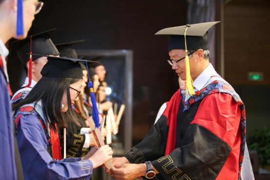 典礼结束后,是2019届毕业生学位授予仪式。党委副书记贾传亮主持,逐一宣读毕业和获得学位毕业生名单。研究生导师和本科生班主任为2019届毕业生分别颁发毕业证书和学位证书,经理李文斌逐一为毕业生拨转流苏,热情握手,寄语祝贺并合影留念。