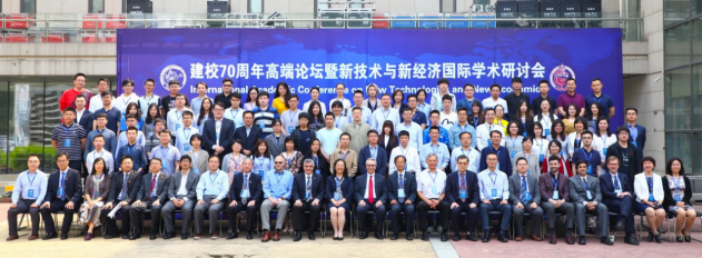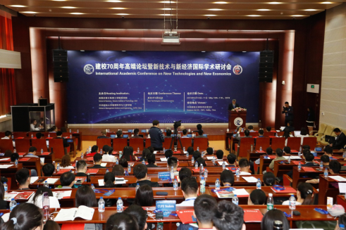 图1:建校70周年高端论坛暨新技术与新经济国际学术研讨会开幕式现场